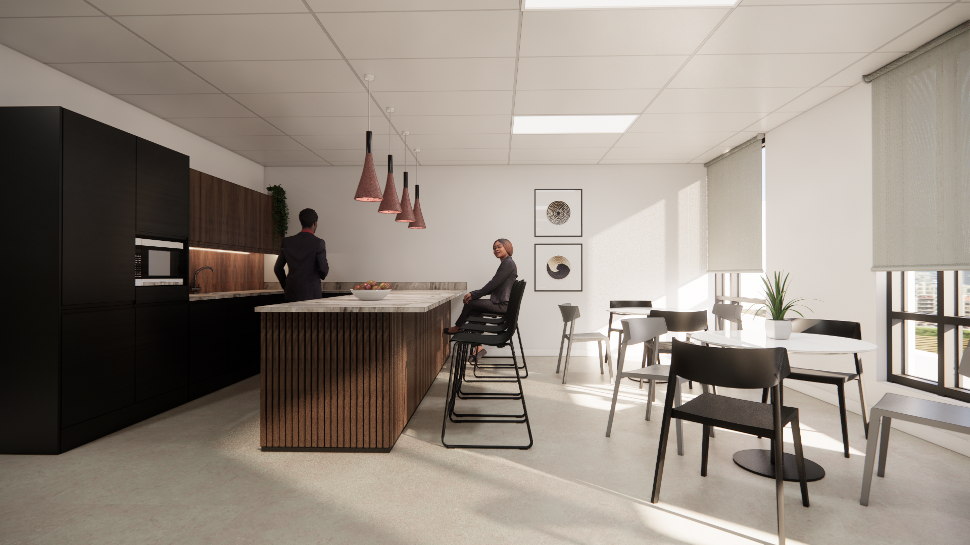 Back of house spaces planned to support collaboration, wellbeing, and daily rhythm